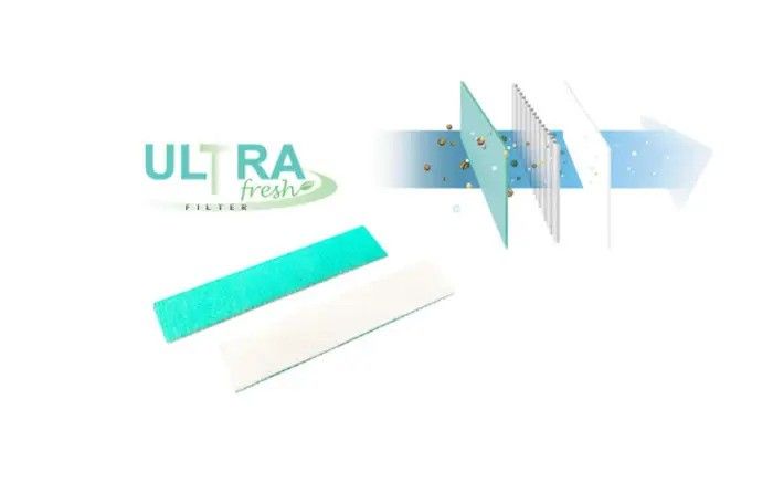 Ultra-Fresh филтъра улавя до 85% от PM2,5(фини прахови частици), създавайки здравословна среда в помещението. Отстранява лошите миризми и предотвратява появата на мухъл. Неутрализира 99% бактерии и вируси.